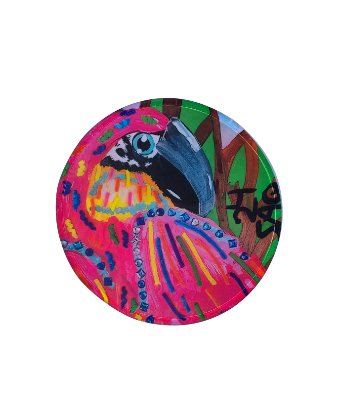 Descubre la fusión perfecta entre arte y funcionalidad con nuestro abanico plegable “Loro Tropical Vibrante”, una pequeña obra de arte portátil. Inspirado directamente en una de nuestras obras originales, este abanico te permite llevar contigo la vibrante estética de un loro estilizado, dominado por intensos tonos de rosa y azul, con detalles de pedrería que capturan la luz. La meticulosa estampación reproduce fielmente los detalles y la riqueza cromática de la pintura, asegurando que cada abanico sea un reflejo auténtico de la creatividad de nuestro artista.