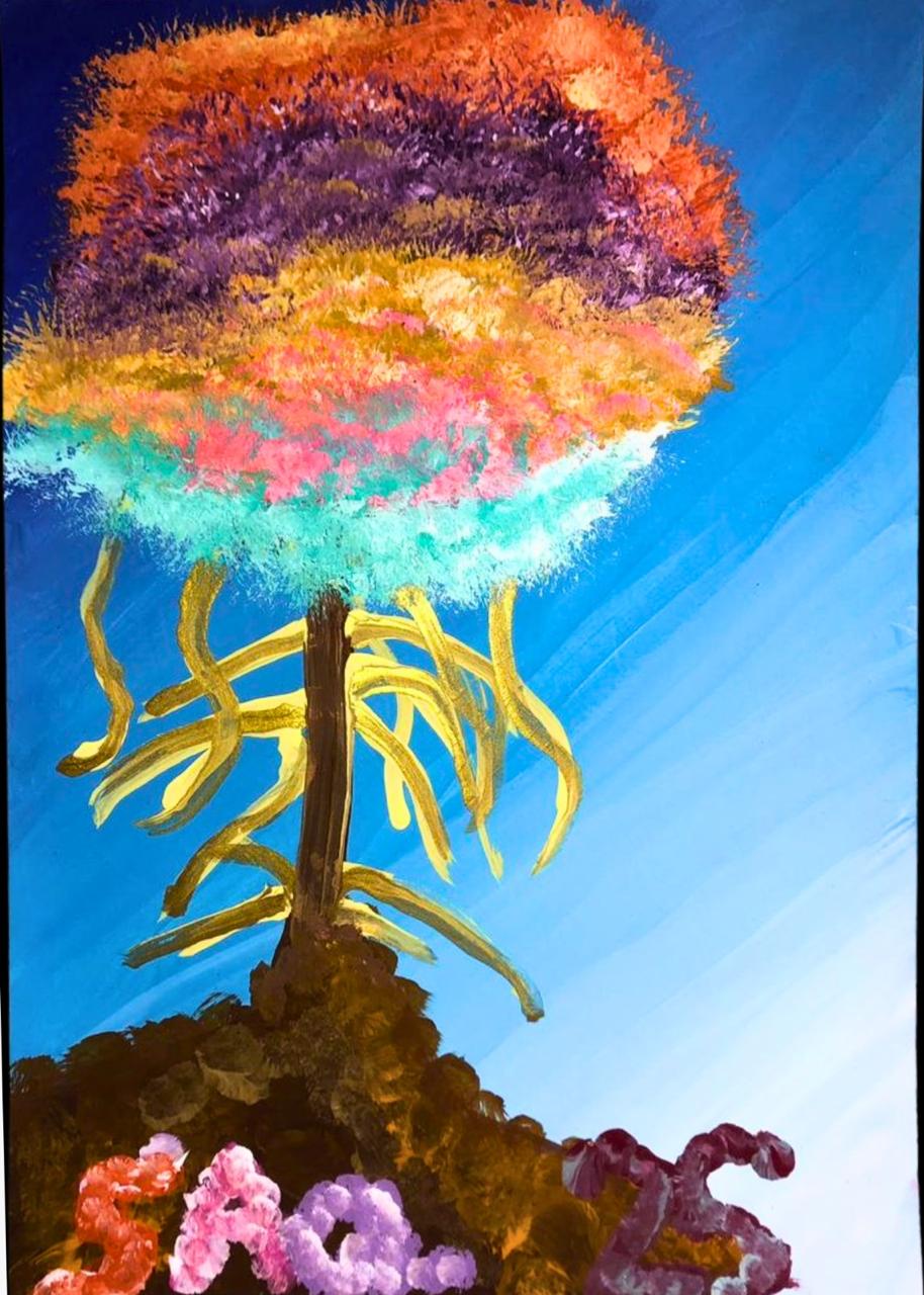 “Flor de los sueños” es una obra abstracta que captura la esencia del color y el movimiento en una composición vibrante y emotiva. Pintada con acrílicos sobre cartón paja de 35×25 cm, este cuadro presenta una explosión de tonalidades que van desde azules profundos y cielo, hasta rosas intensos, amarillos brillantes y verdes frescos. Las pinceladas expresivas y gestuales crean texturas dinámicas que sugieren pétalos en movimiento, como si la flor estuviera bailando en el viento. El fondo oscuro en la parte superior contrasta dramáticamente con los colores luminosos, creando profundidad y dimensión. Esta obra invita al espectador a sumergirse en un mundo de ensueño donde los colores se mezclan libremente, evocando emociones y sensaciones de alegría y libertad. Perfecta para espacios que buscan energía positiva y un toque artístico contemporáneo.