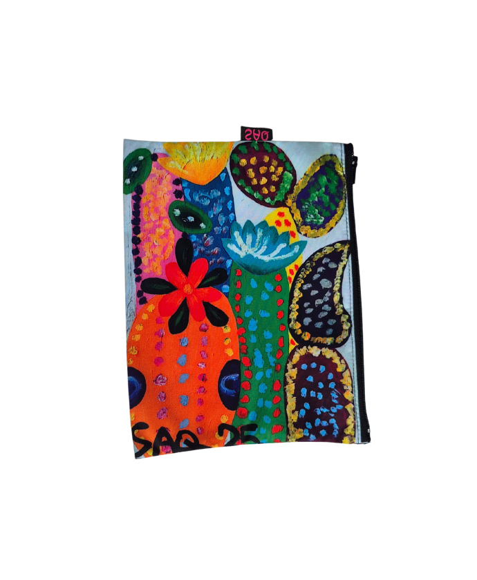 Transforma la forma en que organizas tus objetos con nuestro exclusivo Set de Organizadores de Arte “Cactus Multicolor”. Cada una de estas tres prácticas bolsas está adornada con una vibrante y detallada reproducción del diseño de nuestro cuadro original, que presenta una composición artística de cactus en diversas formas y tamaños, con patrones de puntos y flores en colores vivos como naranja, verde, azul y morado, sobre un fondo claro. Este set no solo es un deleite visual que te permite llevar un toque de arte moderno y botánico a tu día a día, sino también una solución inteligente para mantener todo en orden, ya sea en tu bolso, maleta, tocador o escritorio.