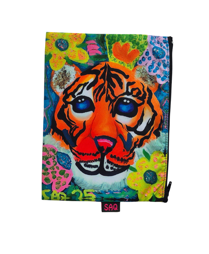 Transforma la forma en que organizas tus objetos con nuestro exclusivo Set de Organizadores de Arte “Tigre Floral”. Cada una de estas tres prácticas bolsas está adornada con una vibrante y detallada reproducción del diseño de nuestro cuadro original, que presenta un majestuoso tigre de penetrantes ojos azules rodeado de una explosión de flores coloridas. Este set no solo es un deleite visual que te permite llevar la energía y la belleza de la fauna y la flora a tu día a día, sino también una solución inteligente para mantener todo en orden, ya sea en tu bolso, maleta, tocador o escritorio.